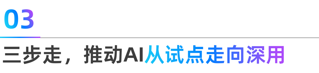 針對 AI 實施路徑,釘釘 AI 交付方案專家梓尋提出了適用於半導體行業的「三步走」方法論。第一步是基礎設施建設,完成平台部署,建設人才梯隊,沉澱資料庫與知識庫。第二步是業務場景滲透,將 AI 能力嵌入研發、生產、協同和管理等關鍵環節,建立可量化的目標。第三步是產品與模型深化,將 AI 能力進一步融入產品體系,或訓練企業專屬模型。