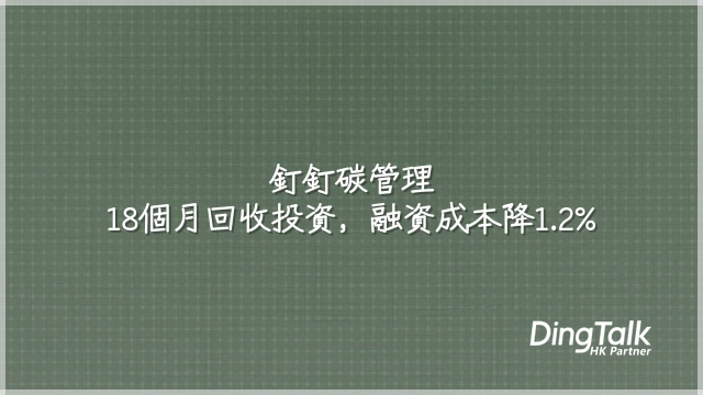 釘釘碳管理方案的平均投資回收期僅18個月,關鍵來自兩大財務槓桿:碳稅預警機制綠色融資利差縮小。香港科技園五家租戶聯合數據顯示,採用智能監測後整體融資成本下降1.2個百分點,每百萬貸款年省12,000港元利息