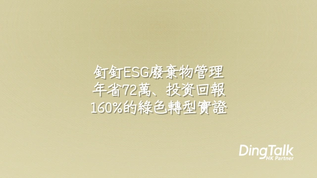 中型製造商採用釘釘ESG廢棄物管理系統後,首年即實現年節省逾72萬元港幣,初始投入僅45萬元,投資報酬率達160%。這不是預測,而是經SGS稽核驗證的實際成果。