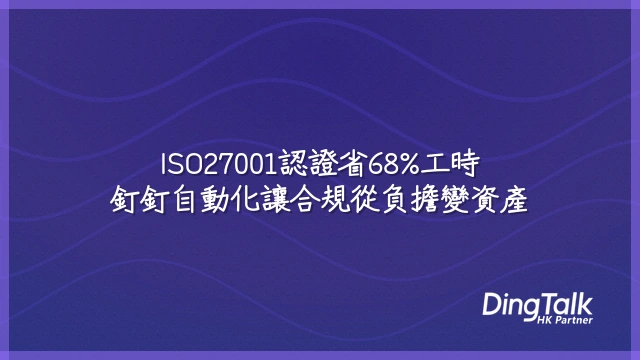 採用釘釘的企業平均節省港幣32萬元於顧問費用與人力工時。前期準備成本下降55%,年度維護工時減少70%,外部稽核通過率更提升至91%(對照行業平均僅68%)。根據2024年亞太區調查,資訊安全合規週期每縮短一個月,企業可提前釋放約HK$1.8M的潛在商機風險。