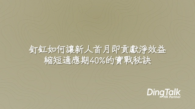 對一家香港零售連鎖企業而言,導入釘釘後六個月內,新員工首月KPI達成率提升38%,從報到至獨立作業由14天縮短至首週完成90%訓練,並即時應用於門店場景。