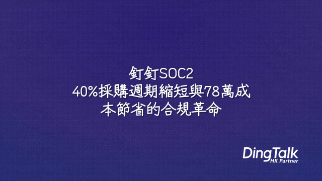 這些內建控制直接減少內部稽核負擔。一家年審投入200小時的金融機構,因釘釘SOC2報告可作為第三方合規證據,ISO 27001準備時間縮短40%,每年節省逾78萬港元成本。合規從成本中心轉為競爭優勢。
