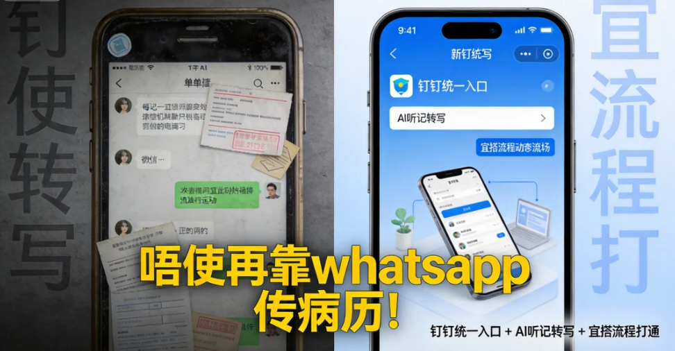 医院用HIS、用财务系统、用排班表,但员工要开五个App,文件要微信传。钉钉唔係再加一个App,係做“统一入口”。通过低代码平台“宜搭”,IT团队可3日搭建一个工单系统,连接HIS、药房、后勤,员工点下手机,就能申请物资、报修设备、提交审批,再唔使等“纸单飞”。会议中提到,深圳三院、首康医院都系用呢个方式,将OA变成“医院操作系统”。