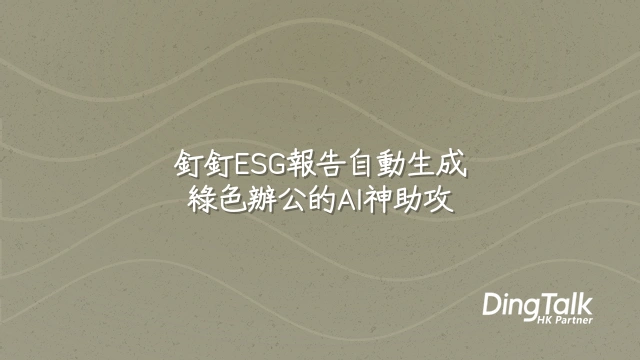 還在為 ESG 報告熬夜到懷疑人生?別怕,釘釘的「AI 智能管家」已上線!這位管家不喝咖啡、不用休假,專職幫你搞定 ESG 數據大混戰。它就像一位超強助理,自動串接 HR 系統的人力資料、財務系統的支出明細,甚至樓宇的能耗監測儀表板,把散落各處的資訊一把抓齊。