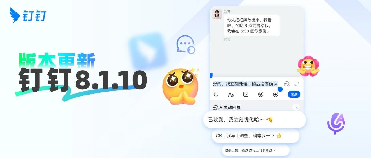 近日,釘釘 8.1.10 版本正式發佈。此版本將 AI 能力深度融入溝通、會議記錄、DingTalk A1 等產品中,真正釋放 AI 作為生產力倍增器的價值。所有用戶升級至最新版後,均可與 AI 協同工作,讓日常辦公更從容高效。01.與同事聊天不用自己回了釘釘推出全新聊天 AI 功能:高情商 AI 助你輕鬆回覆。近期,許多用戶發現釘釘聊天輸入框右側新增了一個小圖標。點擊後即可使用「一鍵生成高情商回 ...