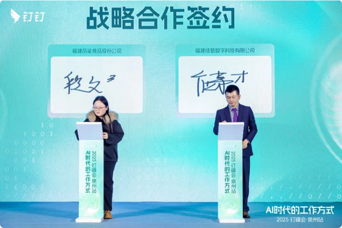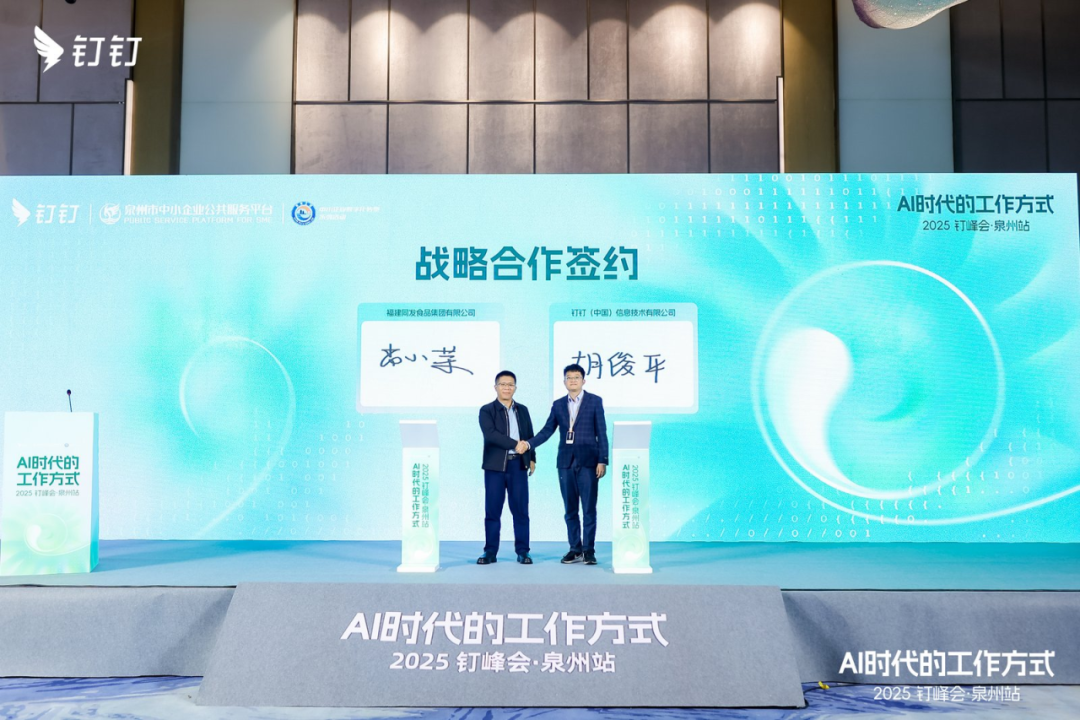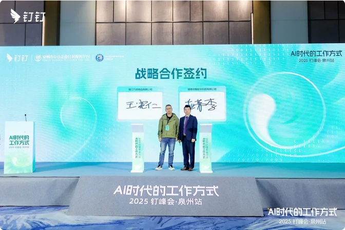 峰會上,泉州市中小企業服務中心與釘釘(中國)資訊技術有限公司簽署戰略合作協議。自2021年首次合作以來,雙方深耕泉州,推動數字化工作方式惠及千萬企業。此次簽約標誌著雙方將在AI時代從「數字化普及」邁向「智能化深化」的關鍵一步。未來,雙方將緊密合作,依托釘釘領先的AI技術和普惠初心,聚焦解決企業真實需求,共同為本地企業量身打造AI時代的工作方式與轉型方案,助力泉州中小企業實現高質量發展。