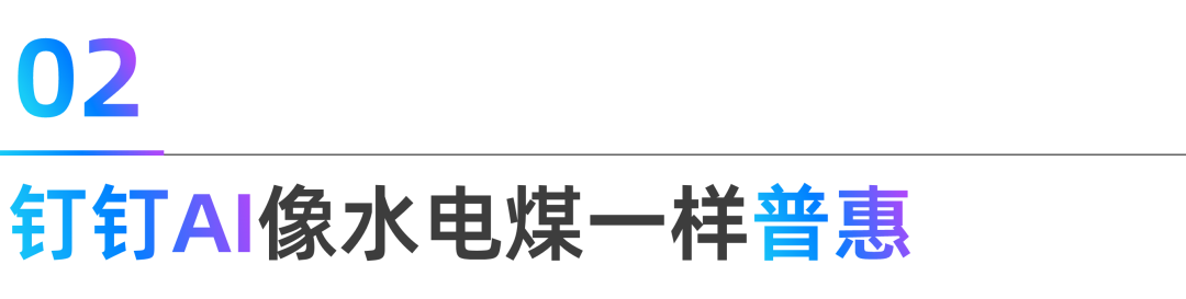 「阿里沉淀的 AI 能力都能夠讓企業在釘釘上使用。像水電煤一樣普惠。」李揚說。