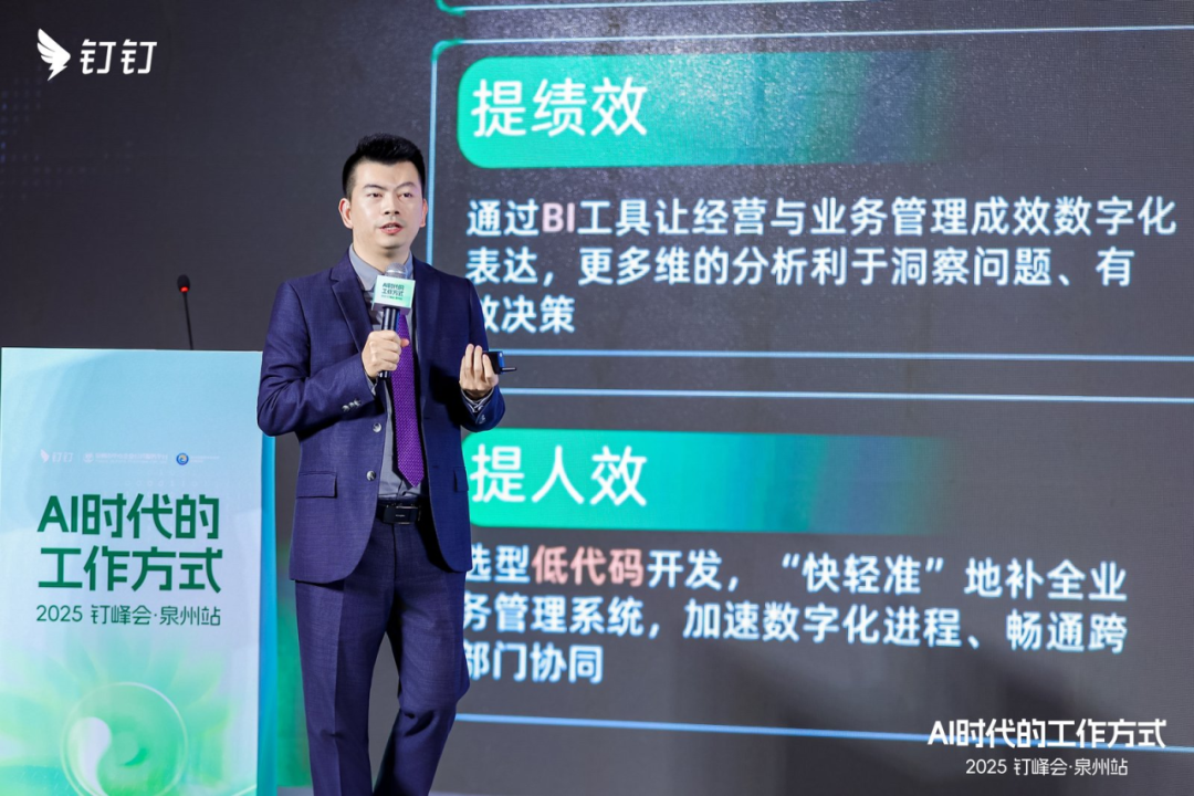 賴金良認為,本次釘峰會恰逢其時,既響應國家號召,又契合泉州發展需求。釘釘及其生態伙伴展示了面向製造業定制的 AI 解決方案,這不僅是一場技術展示,更是助力企業提質、增效、降本、創新的重要途徑。