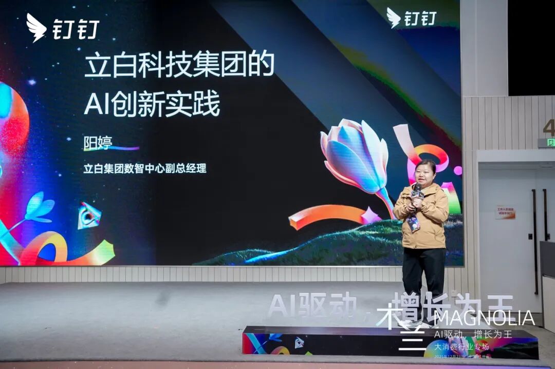 據立白集團數智化中心副總經理陽婷分享,立白將經銷商、導購、承運商等所有角色納入協同網絡,實現跨組織業務的高效流轉,同時將AI應用到核心業務場景。例如在新品開發環節,從產品與技術立項到配方開發,再到新品試產、產品上市整個鏈路,SOP流程結合釘釘Teambition、AI表格形成組合解決方案,讓新品開發過程協同加速。在會議管理場景,透過全面推行在線文檔、AI聽記,並結合AI表格自建督辦體系,確保「會而有議、議而有決、決而有行」。陽婷指出,AI落地一定要與企業實際業務場景結合,智能背後人工不可或缺,如何讓AI更懂企業、更懂文化、更多業務,立白在持續探索中。