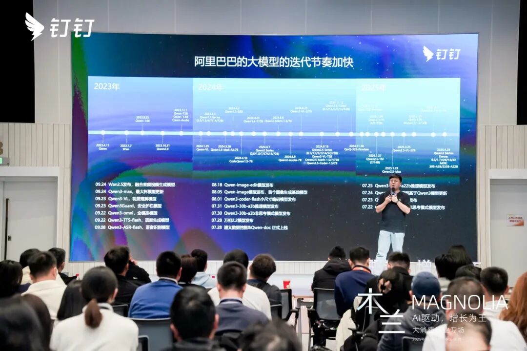 12月23日,釘釘AI 1.1新品發佈暨生態大會「AI驅動,增長為王」大消費行業專場在杭州舉行。本次專場聚焦AI技術如何深度賦能服飾、餐飲、零售、家居、物流等多元大消費場景,聚集行業頭部企業代表與技術專家,共同探討在宏觀環境承壓、消費結構加速分化的背景下,企業如何借力AI實現確定性增長。