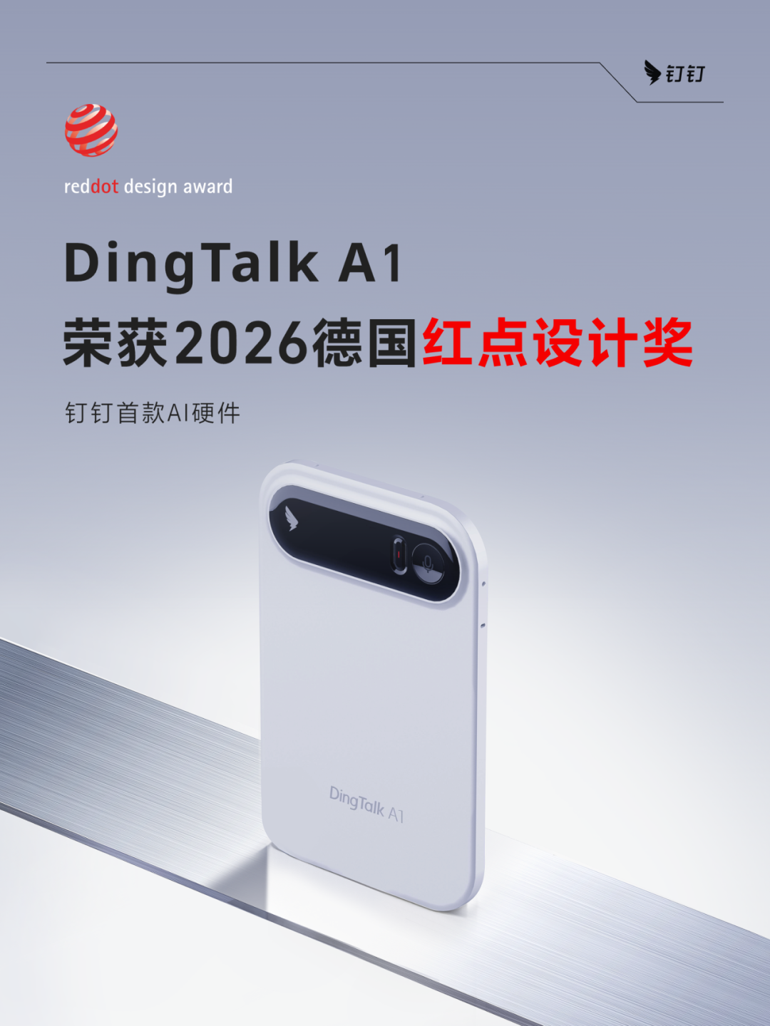 近日,DingTalk A1 喜奪 2024 年德國紅點產品設計大獎(Red Dot Award: Product Design)。該獎項乃全球公認極具權威性及影響力之大獎之一,今次獲獎標誌著釘釘 A1 錄音卡在產品設計及用戶體驗層面獲得了國際高度重視。