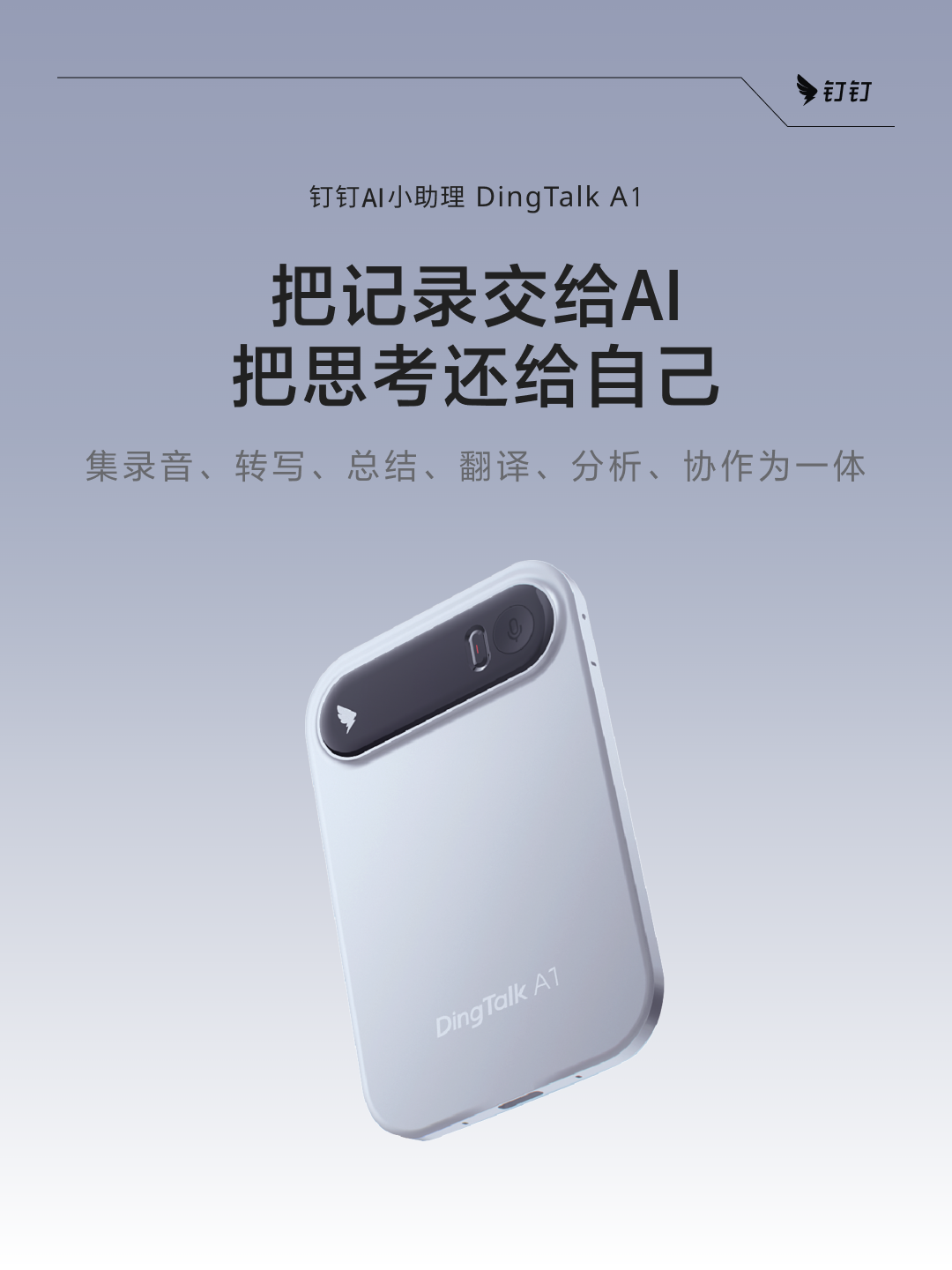 釘釘 A1 錄音卡為一款集錄音、轉寫、總結、翻譯同分析於一身嘅智能協作工具。雖然僅有 3.8mm 之厚度,但卻內置 6 麥克風陣列,支援最長 45 小時連續錄音,亦可實現語音轉寫、會議記錄生成、即時傳譯同 AI 智能輔助,兼顧輕薄外觀同強勁功能。
