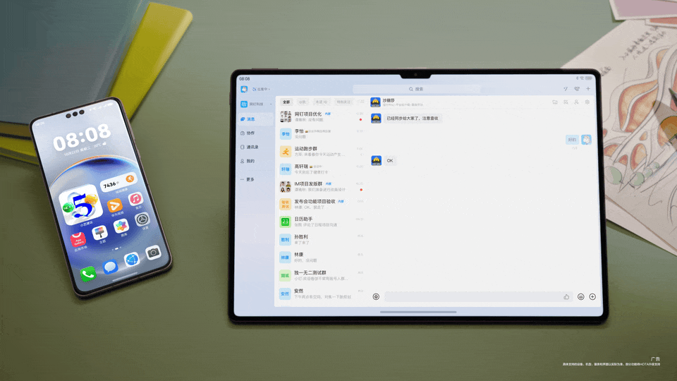 基於鴻蒙系統一次開發、多端部署的特性,釘釘在手機、摺疊屏、Pad等多設備間實現多端一致的絲滑體驗。