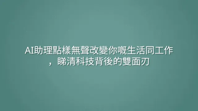 同時,自動化取代基層文職、客服等崗位,引發失業潮同技能斷層。諷刺地,愈聰明嘅 ai 助理,可能令人類愈脆弱。因此,我哋需要清醒使用呢把雙面刃:擁抱效率之餘,亦要守住自主思考同倫理底線。