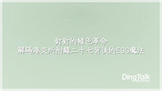 有趣的是,釘釘雖非上市公司,卻像班上自願加練的資優生,主動對標這套標準。為什麼?因為它的客戶很多是上市公司,生態系一體連動,合規壓力自然傳導過來。再者,港交所強調「實質性」與「投資者決策相關性」,正符合釘釘推動數位化減碳的價值主張。與其被動應戰,不如提前把報告寫成「永續績優單」,讓合作夥伴一看就安心。