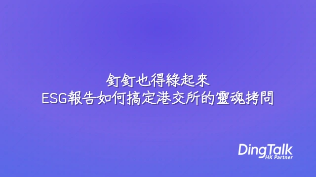 與其被動挨打,不如主動出擊。第一步,用釘釘整合跨部門數據,從差旅、用電到員工培訓,建立即時可調取的ESG資料庫;第二步,把碳排強度、多元比例等關鍵指標直接嵌入部門考評,讓每個主管都成為ESG守門員;第三步,每季來場「模擬披露大演習」,預演港交所可能的刁鑽問題,練到從容不迫。畢竟,在ESG的賽道上,合規只是起跑線,能將數據轉化為品牌信任與投資人青睞的企業,才能真正領跑。