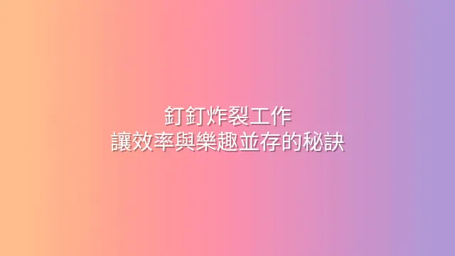 搭配番茄工作法更神:25分鐘全神投入,釘釦內建計時器+靜音模式,誰敢在這期間傳「在嗎?」就讓他吃已讀不回的冷風。休息5分鐘再戰,節奏掌握好,效率自然爆表。記住,不是忙到翻掉才叫認真,而是用對方法,讓工作與生活共舞