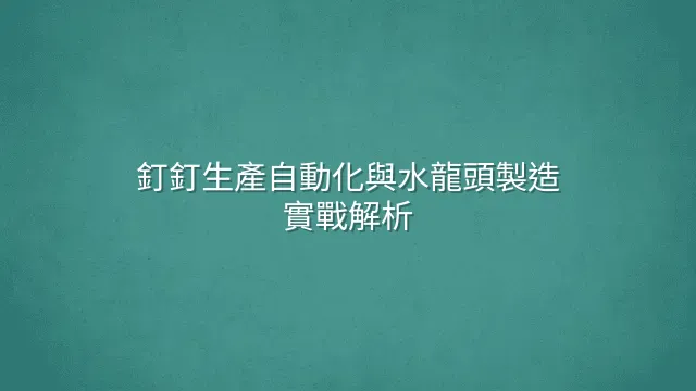 更妙的是,搭配AI學習演算法,機器還會「越做越聰明」,自我調整參數減少浪費。這不只是省時省力,更是把傳統製造推向智慧化門檻的第一步——畢竟,連釘子都自動化了,水龍頭又豈能落後?接下來的硬仗,才正要開始。