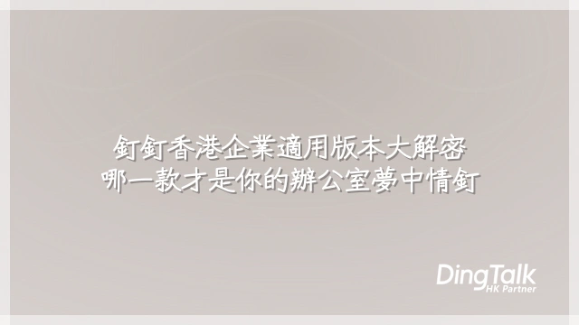 總結:港企若想走得遠又穩,國際版或專屬版才是真命天子,既避開合規地雷,又能靈活擴展。本地支援電郵 cs@dingtalk.com.hk 或致電熱線 +852 64392620,即時解鎖專屬方案!