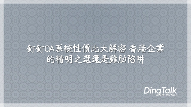 「性價比」這三個字,聽起來像極了香港茶餐廳的「特惠套餐」——看似抵食,但吃完才發現附送一碟莫名的壓力。 釘釘OA系統在內地風光無限,但來到香港,它究竟是C/P值爆燈的辦公神器,還是一套披著科技外衣的「社畜刑具」?讓我們撕開包裝,看看這份「阿裡出品」到底值不值得港企埋單。