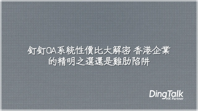 「性價比」三個字,聽起來很銅臭,但在香港做生意,誰不是斤斤計較? 釘釘在內地幾乎是政府部門都用的「數碼公務員」,來到香江卻常被誤會成「阿嬸級軟件」。其實細拆帳本,你會發現它根本是辦公室的「平價米其林」——免費版已能撐起中小企日常運作:百人會議不卡頓、審批流程拖到明年?不存在的。更誇張的是,付費版年費可能還比公司每月影印紙開支少。對比本地OA動輒按人頭收月費、附加模組再另計的「分拆銷售哲學」,釘釘一體打包簡直像超市買便當——有肉有菜有湯,還送飲料。