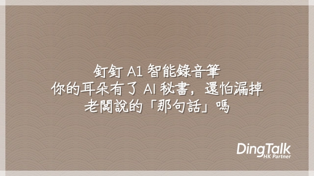 開會30分鐘,事後卻要花兩小時埋單?別再用靈魂去記每一句「等一下你負責跟進」了!釘釘 A1 智能錄音筆一鍵按下,AI立刻化身你的文字外掛大腦——會議才剛結束,它已經把滿屋子的口頭禪轉成一份條理分明的行動地圖。
