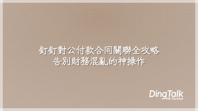 你有沒有想過,每一筆公司付款其實都該有個「身分證」?在釘釘裡,「對公付款合同關聯」就是幫每一分錢上戶口的神操作。簡單來說,就是把你要付給供應商的款項,跟你們簽過的電子合同在系統裡牢牢綁在一起,像用一條數位鎖鏈把錢和約定焊死。