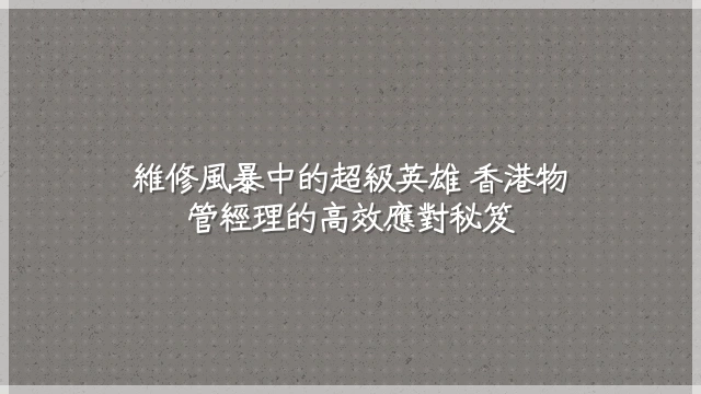 「叮咚!」維修單一響,物管經理的戰鬥就開始了。在香港這座連時間都搭港鐵的地獄級住宅副本裡,住戶按完報修鍵的三秒內,腦內小劇場已上演十集投訴大戲:「又沒人理我!」「上次修了三天燈還在閃!」——但你知道嗎?研究顯示,只要在15分鐘內收到一句「已收到,正在處理」,投訴意願瞬間蒸發八成!這不是魔法,是心理學中的「被看見效應」:人不怕問題,怕被當空氣。