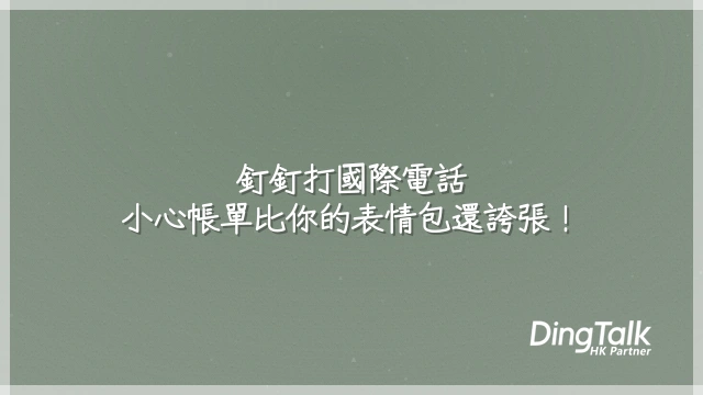 「免費通話」四個字,是現代科技最甜的毒藥。 小美開心地在釘釘上點了「撥號」,想跟遠在日本的同事討論專案,心想:「我們都在用釘釘,當然免費啊!」結果下個月帳單跳出——一通三分鐘的電話,扣了港幣80元。她當下的表情,比她收藏的「我很好,誰都不許笑」貓咪包還扭曲。