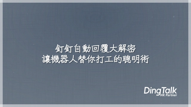 「我正在忙」這種自動回覆,說穿了就是現代版的「閉門羹」。 但如果你以為自動回覆只能當個冷淡的守門員,那你就錯過了釘釘企業版藏在背後的智慧引擎!升級帳號後,你就能解鎖關鍵字觸發回應——同事一傳「報銷」,系統立刻甩出流程PDF與填表連結,比行政小妹還快;客戶問「合約模板」,一秒傳送最新版檔,專業度瞬間拉滿。