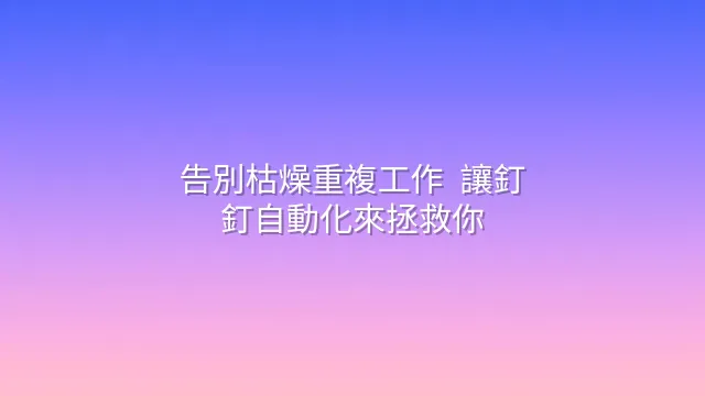 記住,自動化不是偷懶,而是把人力用在刀口上。與其每天重複點擊,不如讓釘釘替你打工!