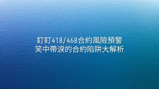 簽合約就像在夜市吃小吃,看起來香噴噴,但搞不好咬到塑化劑還不知道。釘釘418/468合約看似平易近人,實則步步機關,想全身而退?先學會「合約防身術」再說!