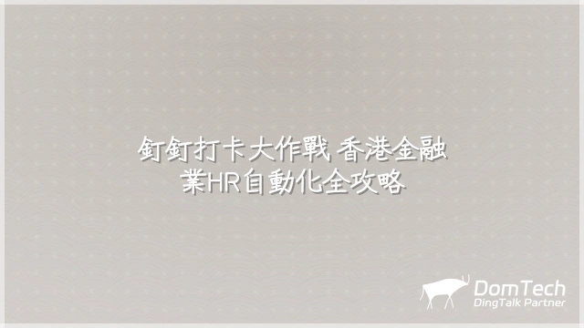 說到中環投行,你腦海是不是立刻浮現西裝筆挺、咖啡續命、Excel 表格塞爆郵件的畫面?有家專做併購的中型投行,每月光是核對考勤就讓 HR 團隊熬夜到「靈魂出竅」。導入釘釘後,他們不是變強了,是直接 進化成半機械人——每月省下 200 小時重複勞動,準確率衝上 99.8%,連合規審計都從「地獄副本」變成「輕鬆日常」。
