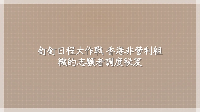 還在用手機逐個問:「你下週六有空嗎?」然後收到一堆「放錯假」的志願者回覆?別讓熱心市民變「失聯部隊」!香港非營利組織天天面對的排班地獄,現在靠釘釘日程三步就搞定——從混亂到有序,就像把茶餐廳的點單紙升級成米其林預約系統。