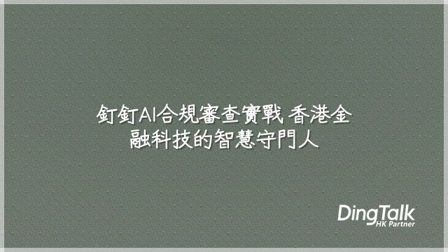 別再等監管敲門才開始整理文件了!現在就致電 +852 6439 2620 或電郵 cs@dingtalk.com.hk,讓釘釘AI做你的第一道防線——畢竟,最好的合規策略,就是讓監管機構來的時候,只為了讚美你。
