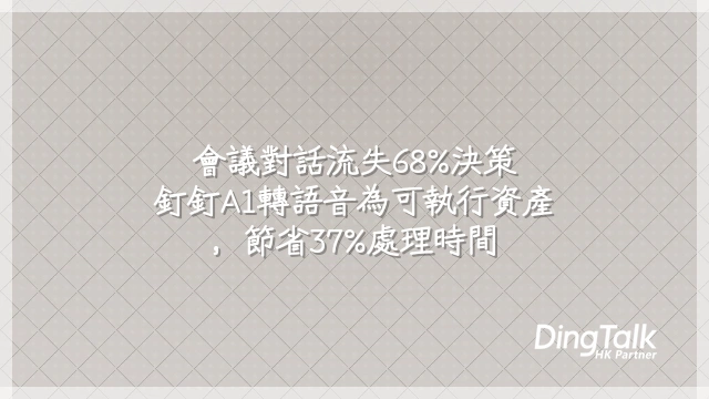 現登入 https://www.dingtalk.com.hk/purchase/dingtalk-a1 填寫地址即可購得釘釘A1旗艦版,享早鳥85折優惠。每延遲一天部署,你的會議對話、客戶洞察與關鍵決策就可能流失一次——這些無形資產的沉沒成本,正悄悄侵蝕組織的創新動能。