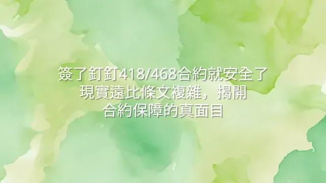 另一方面,清潔工阿珍直言,無論是418還是468合約,權益是否按比例享有仍是未解難題。換言之,合約選擇已非出於保障目的,而是行業操作習慣的延續——成衣業傾向468因其彈性調配空間大;清潔業則偏好418的累計模式以便靈活排班。這種分化說明釘釘418/468合約風險預警若僅停留在文本層面,忽略產業特性與執法環境,終究難逃「換湯不換藥」的命運。真正的改革,應從「如何證明連續性」與「如何保障比例權益」著手,而非一味追求條文更新。