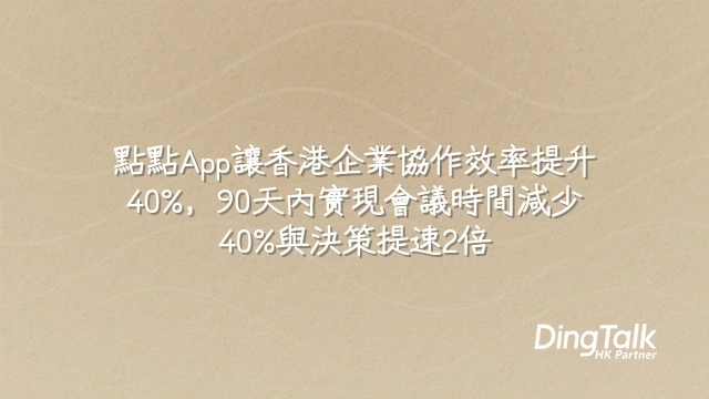 本地企業可透過香港支援電郵 cs@dingtalk.com.hk 或致電熱線 +852 64392620 獲得部署協助,技術顧問將於24小時內提供客製化指引。延續KPI優化的 momentum,此階段將把溝通效率轉化為可量化的項目交付加速。