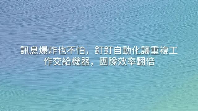 真正的高手不會只設定就放生,而是定期審查哪些流程已過時。更聰明的做法是建立內部自動化知識庫,記錄每條規則的目的、負責人與異常處理方式,避免陷入「誰設的誰才知道」的地獄循環。唯有持續優化,才能讓釘釘自動化系統提醒與通告真正跑得穩、走得遠。