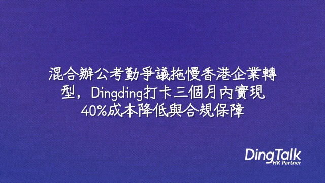 Dingding打卡整合GPS定位、Wi-Fi綁定、人臉識別與虛擬圍欄(Geofencing)四大技術,意味著無論在上水倉庫、深港跨境途中或客戶現場,都能自動生成可信出勤記錄。數據準確率提升30%,直接減少管理爭議與覆核成本,為混合辦公建立數位信任基礎。