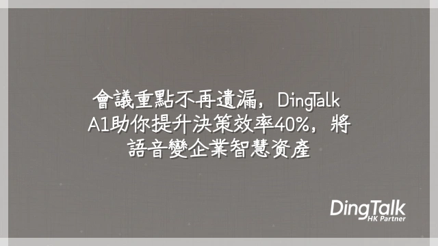 轉捩點正在出現。新一代AI音訊設備唔再滿足於「收音」,而是著眼於「理解」同「轉化」。當語音可以即時轉文字、自動摘要重點、分離待辦事項,甚至即時翻譯多國語言,會議就唔再只係「講過就算」,而係成為企業知識庫嘅活水源頭。接下來要問嘅問題唔再係點樣記低,而係:DingTalk A1 點樣將語音變智慧資料庫