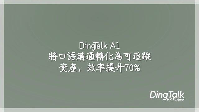 DingTalk A1 是你的「決策保險」:它把口語溝通轉化為可分析、可追蹤、可稽核的結構化資產。想像一位業務員每月進行20次關鍵客戶會談,過往需耗時20小時手動整理內容。導入A1後,每次節省1小時,全年累積釋放240小時——相當於一名兼職員工的產能。