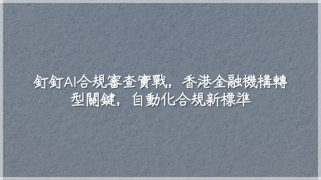 面對SFC日益嚴格的要求,金融機構不能再依賴事後抽樣。釘釘AI整合核心在於『即時嵌入、自動標記、風險分流』,透過分階段部署降低中斷風險。