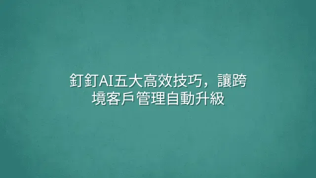 釘釘AI客戶檔案管理累積的數據資產,正升級為企業的戰略大腦。國際貿易本質是資訊時差的競賽,誰看得深、反應快,誰就掌握先機。與其用Excel逐行篩選,不如啟用AI儀表板即時分析客戶採購模式。例如發現東南亞客戶偏好『小批量、多批次』訂單,便可調整前置倉儲與空運比例,物流成本瞬降三成。長期追蹤還能揭示隱藏商機:越南經銷商訂貨頻率雖高但單筆金額低,設計彈性出貨方案反而提升整體回購率。更高階的應用是預測式布局——當數據顯示中亞市場需求萌芽,主動推送客製化報價,搶在競爭對手察覺前卡位。這才是國際貿易的終極外掛:不是單純加快回郵速度,而是在客戶開口前已知其所需。釘釘AI客戶檔案管理將被動接單轉化為主動引導,實現從執行者到領導者的跨越。這項高效技巧,正是數位時代跨境企業的致勝關鍵。