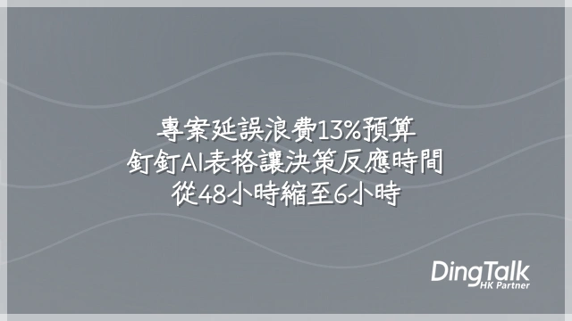 當團隊執行透明化,管理層的挑戰不再是‘不知道’,而是‘如何快速行動’。釘釘AI表格的實時數據看板,正是從‘看見進度’到‘主導結果’的樞紐。過去高層介入危機平均延遲48小時,現在透過整合KPI趨勢、風險預警與資源使用率的儀表板,反應時間已壓縮至6小時內。