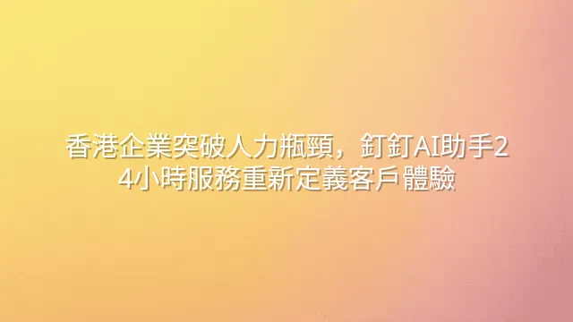 香港客服團隊面臨著極端的人力壓力與即時服務期望之間的斷層。隨著消費者習慣演變,夜間與假日的金融諮詢需求持續上升,純靠夜班或外包已難以負荷且成本高昂。釘釘AI助手24小時服務提供了一種可擴展的解決方案,將重複性查詢處理成本降低超過40%,同時釋放人力投入理財規劃等增值服務。根據HKT Enterprise Solutions 2023年數據,整合AI智能客服後,銀行IVR系統效率提升40%,大幅改善客戶體驗。
