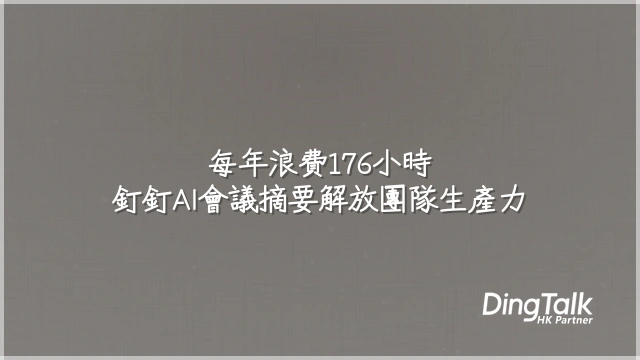 每週節省每位員工2.5小時——這不是預測,而是企業導入釘釘AI自動會議摘要後的實際產出。換算下來,等於每年為每位員工額外釋放65個工作日的產能。在人力成本持續攀升的香港市場,這代表著無需擴編即可提升組織輸出的真實紅利。若你仍在手動整理會議記錄、追蹤行動項目,你的團隊正以「隱形工時」支付高昂的效率稅。