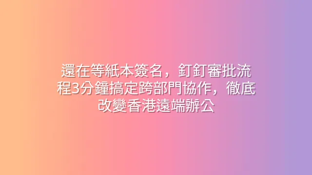 釘釘審批流程的崛起,正是針對香港企業長期積累的行政滯脹。一張請假單需經主管、經理、人力資源三重蓋印,若其中一人出差或郵箱爆滿,等足七日也不出奇。呢種「簽名長征」唔單止令員工怨聲載道,更令香港遠端辦公淪為空談。在家工作點啊?影張圖send去WhatsApp群組先至有人肯簽?團隊分散喺旺角同西貢,傳統溝通模式根本追唔上決策節奏。問題不在人懶,而在制度老化——明明用緊OA系統,卻仲要電子填表加紙本補簽,科技冇幫手,反而疊多重程序拖慢流轉。尤其採購申請、費用報銷等跨部門協作,往往卡喺「等一位主管出現」呢一刻。呢啲看似微細嘅延誤,日積月累變咗企業運作嘅慢性病,傷士氣、蝕時間成本。面對急速市場變化,企業再不能靠「人等簽名」推動進度,真正實現辦公室數碼轉型,必須由根部改革。