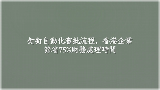 根據2024年香港會計師公會調查,傳統紙本流程平均需時5.2天處理一宗申請,而使用釘釘的企業僅需1.3天,效率提升逾75%,人為錯誤下降逾60%。所有審批記錄可追溯且不可篡改,完全符合內部稽核與《公司條例》第622章要求。這不只是工具升級,更是財務控制從被動走向主動的關鍵跳板。