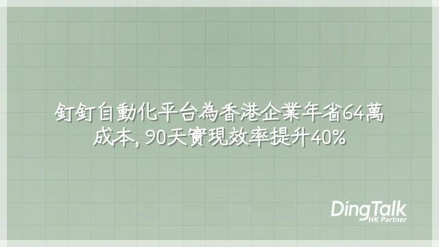 考慮單位成本變革:手動處理一筆請購單平均耗費HK$86(含工時與糾錯成本),而釘釘自動化流程壓降至HK$32。若你每年處理12,000筆申請,僅此一項即可節省超過64萬港元,並釋放3.5名文職人員轉投客戶服務或數位行銷等增值崗位。